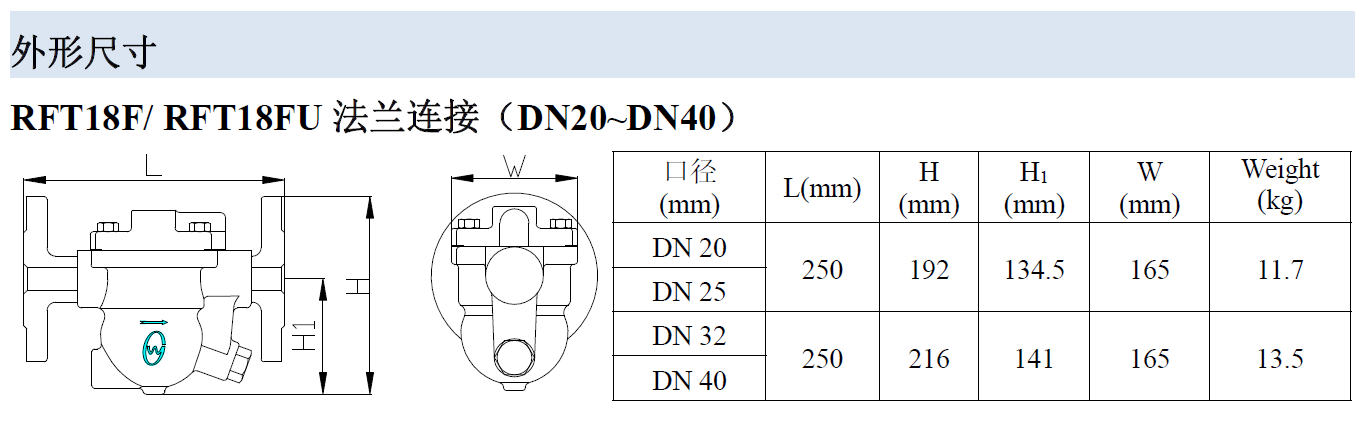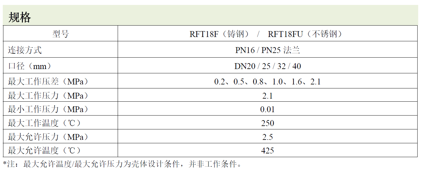 適用于中型換熱設(shè)備疏水,RFT18F/ RFT18FU最大排量約1800kg/h