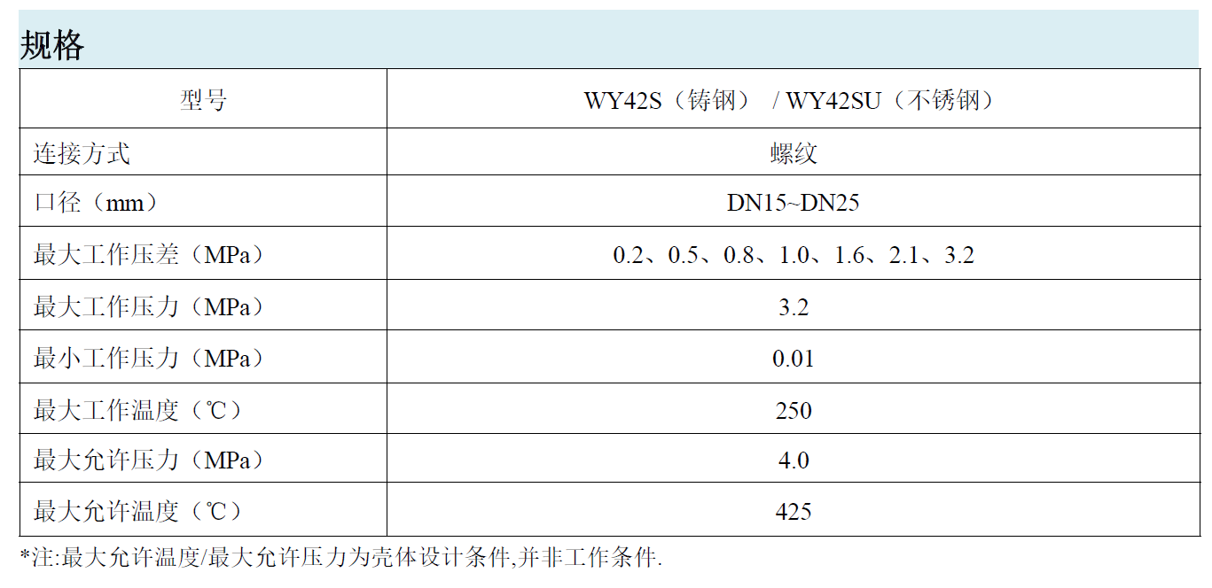 適用于夾套鍋,供暖,小型蒸煮鍋,小型烘箱,加熱盤管,消毒鍋,滅菌柜,溶劑回收裝置,小型蒸發器,換熱器,空調機組加熱加濕,洗衣房設備,管道末端等,其中WY42SU為不銹鋼材質,用于衛生或防腐要求高的工況。
