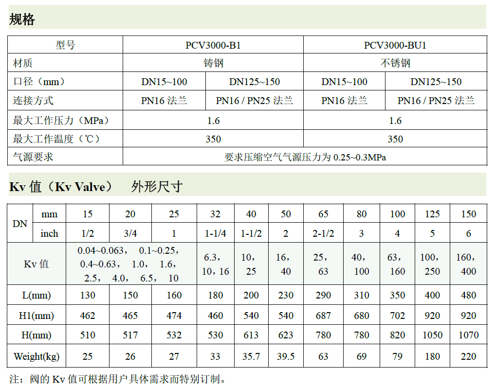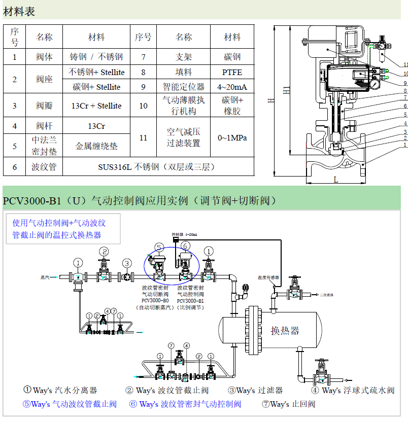 波紋管密封氣動控制閥PCV3000-B1 / PCV3000-BU1