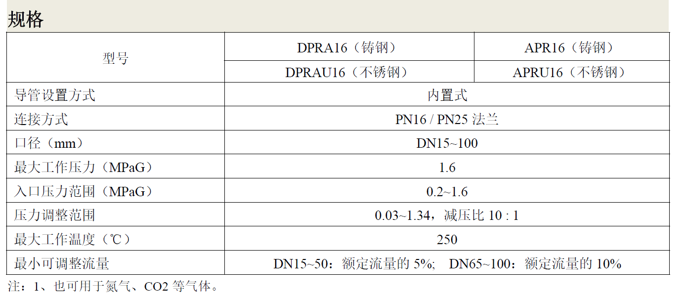 8、DN15~50口徑,建議選用膜片式減壓閥DPRA16;DN65及以上口徑,建議選用活塞式減壓閥PRA16。