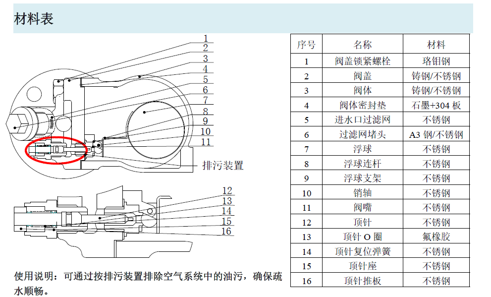 3、浮球復(fù)位時確保始終以閥嘴為支點,不會產(chǎn)生移位現(xiàn)象,具有完美的密封性,即使冷凝水很少,也不漏空氣。
