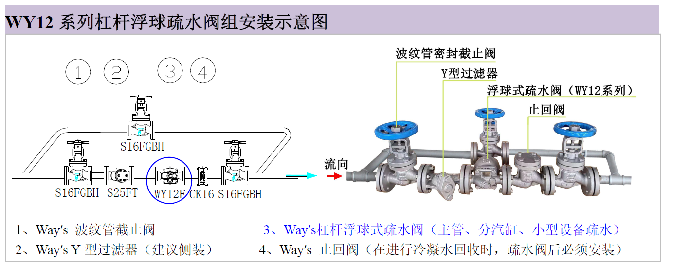 B、因為杠桿浮球疏水閥水位設計要高一點,因此疏水閥前這一小段水平管內會有積水,每次積滿到設計的水位,就會立即排放,排放完了會再次讓其積水,再次排放,依此循環。